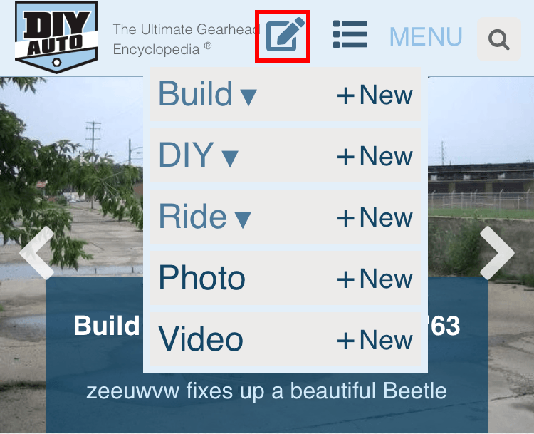 Next is the Build section. Need I say more? DIYauto.com has hundreds of incredible builds and this is where they are stored. You can view them in the vehicle pages, or browse all builds by clicking "Menu" then "Browse" on the top menu bar. If you'd like to add a build, click "+ New Build" on the vehicle page, or use the pencil icon on the top menu bar.
